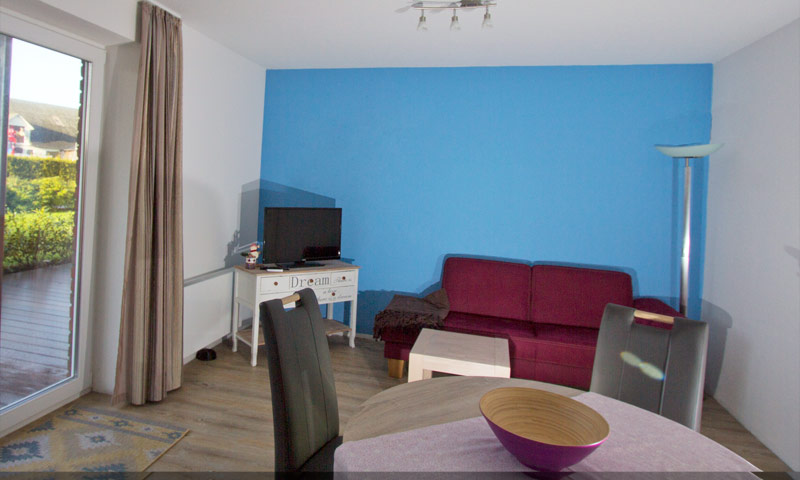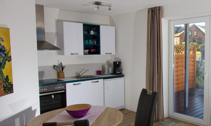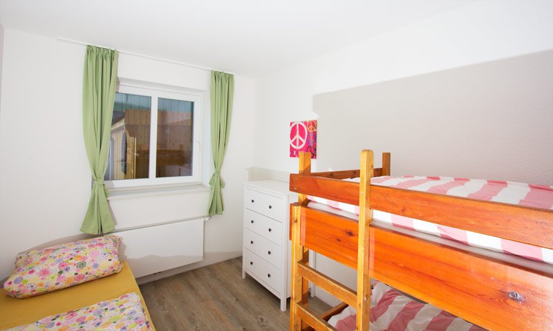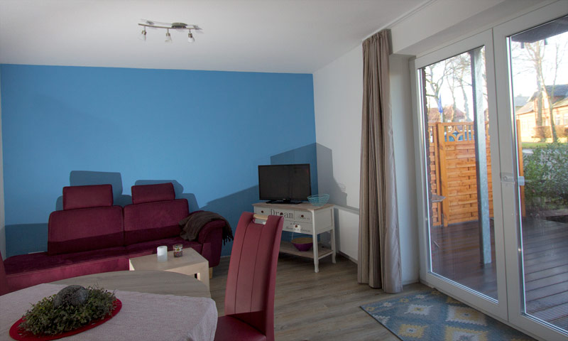 Jede Ferienwohnung verfügt über 3 Räume, großes Duschbad und jew. einer eigenen Terrasse bzw. Balkon. Im Wohnbereich ist eine Küchenzeile integriert mit großem Eßplatz und einer gemütlichen Sitzecke. Ein Schlafzimmer verfügt über 1 Doppelbett und im 2. Schlafraum steht ein Etagenbett und ggf. noch ein zusätzliches Gästebett.